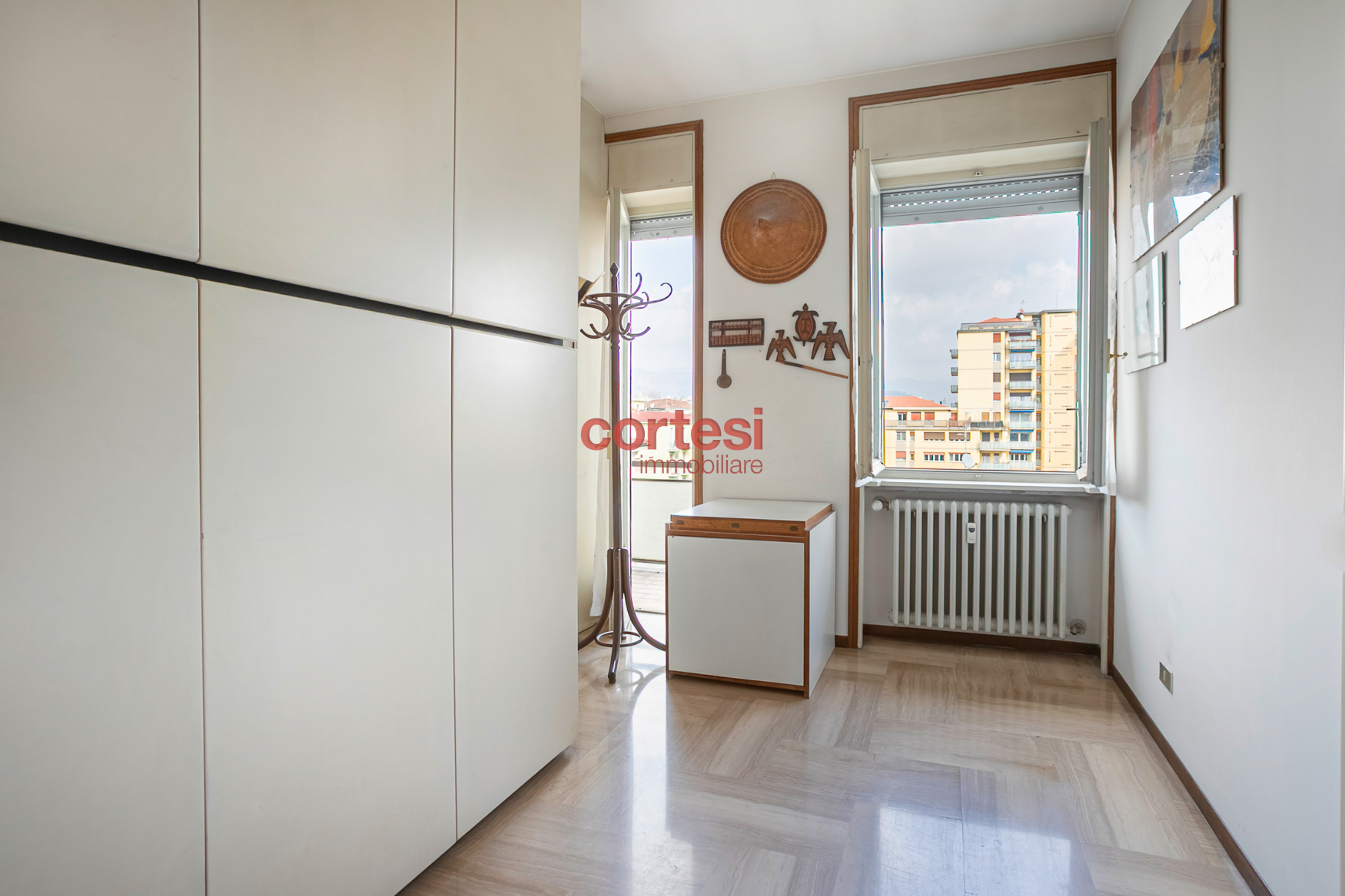 Grazie all’elevato piano e all’ottima esposizione l’immobile è caratterizzato da abbondante luce naturale e consente di godere di piacevoli affacci; in particolare si può ammirare una suggestiva veduta su Bergamo Alta.