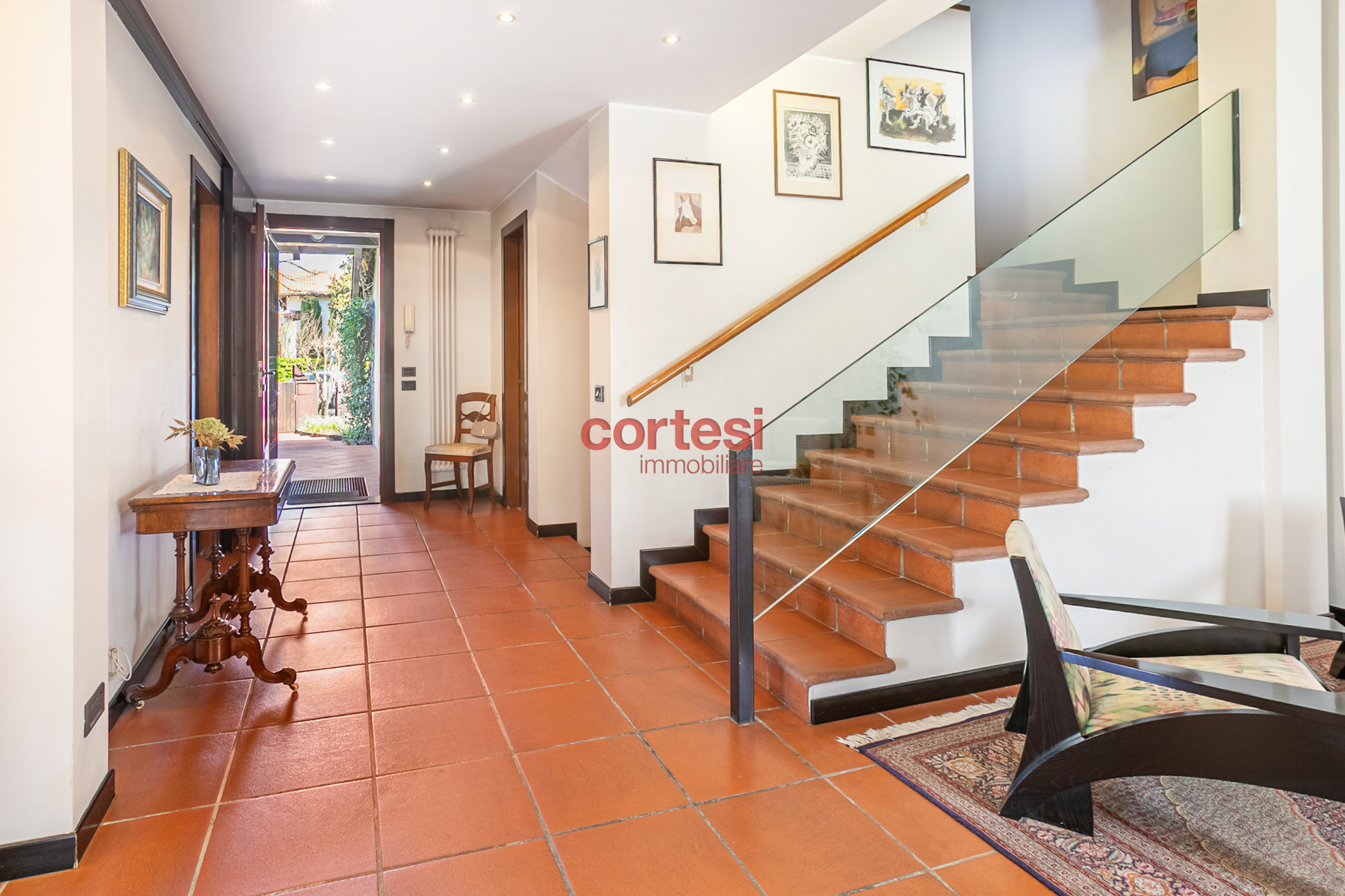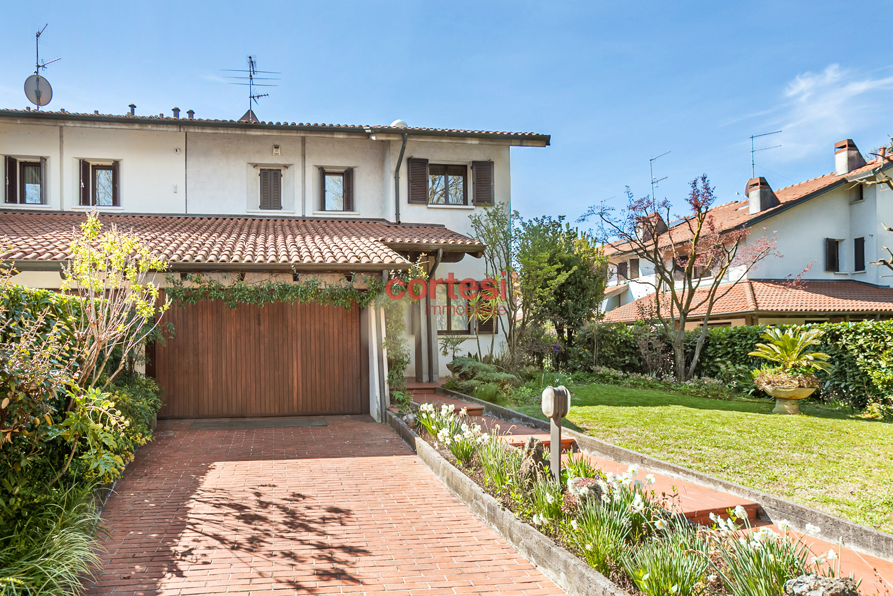 La proprietà è completata da un’ampia autorimessa al piano strada con accesso diretto dalla via senza rampe interne per manovre semplici e pratiche con la possibilità di parcheggiare una seconda/terza auto sul vialetto esterno al box.