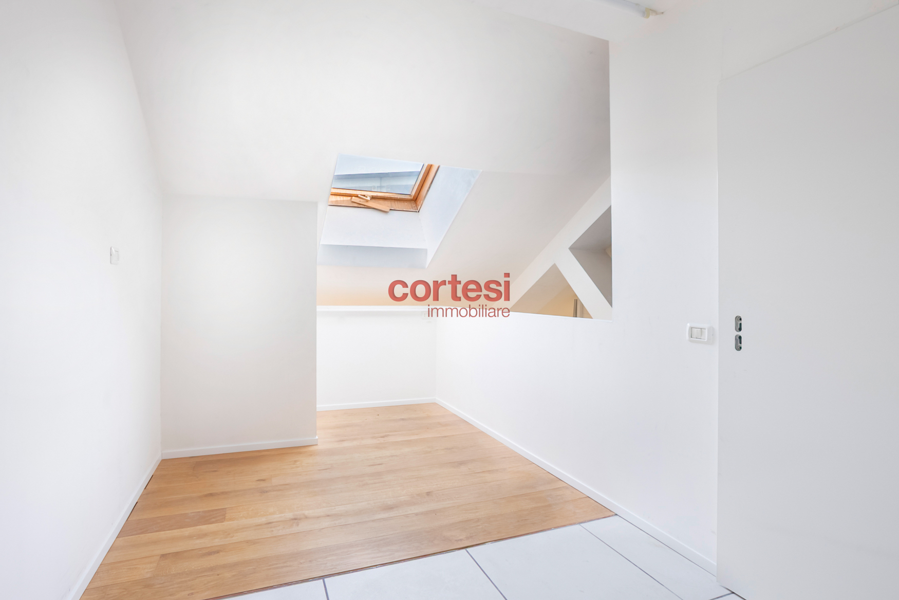 Una doppia scala conduce alla zona mansardata, dove si trovano tre vani, con la possibilità di trasformarli in un' ulteriore camera con cabina armadio o studio. La luce naturale in questa area è accentuata dalle finestre velux.