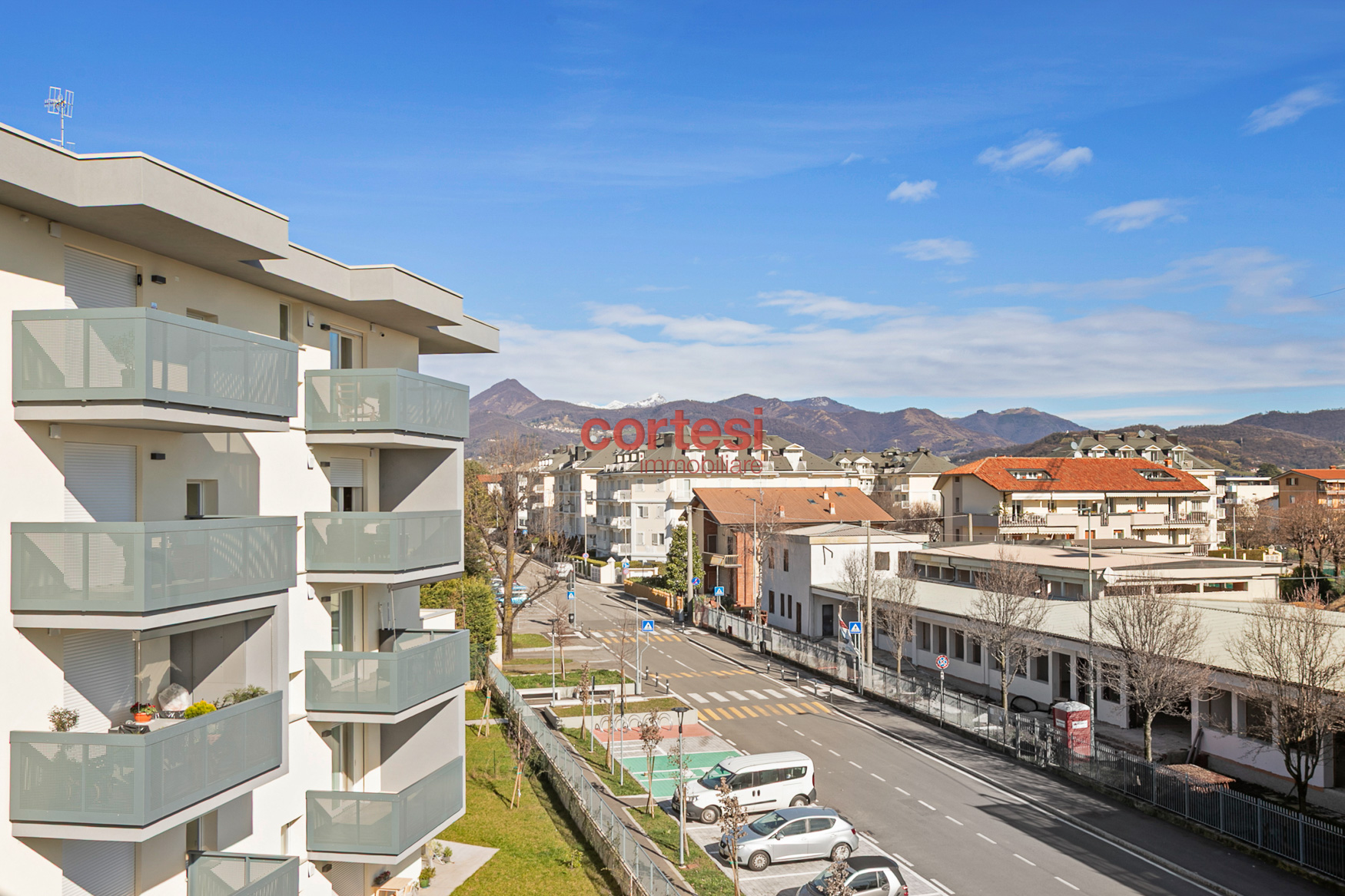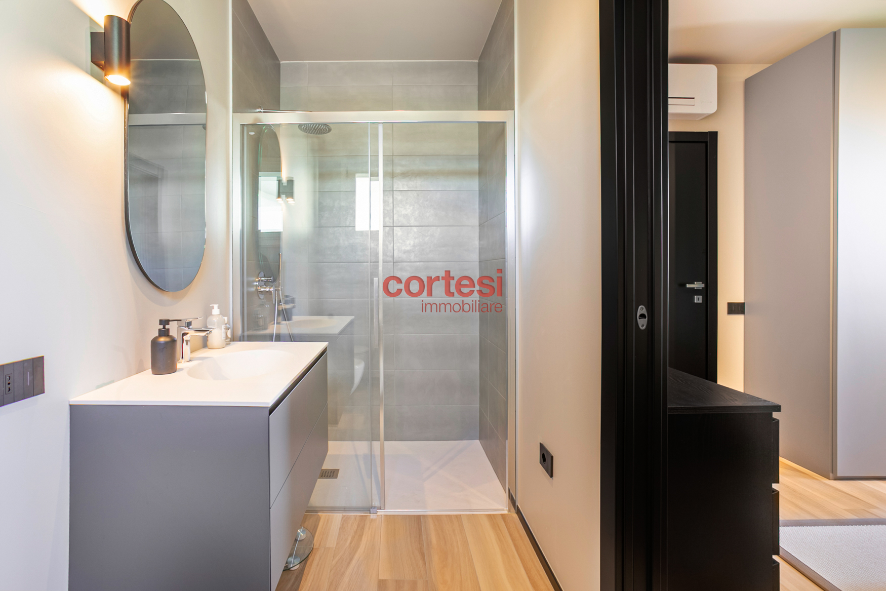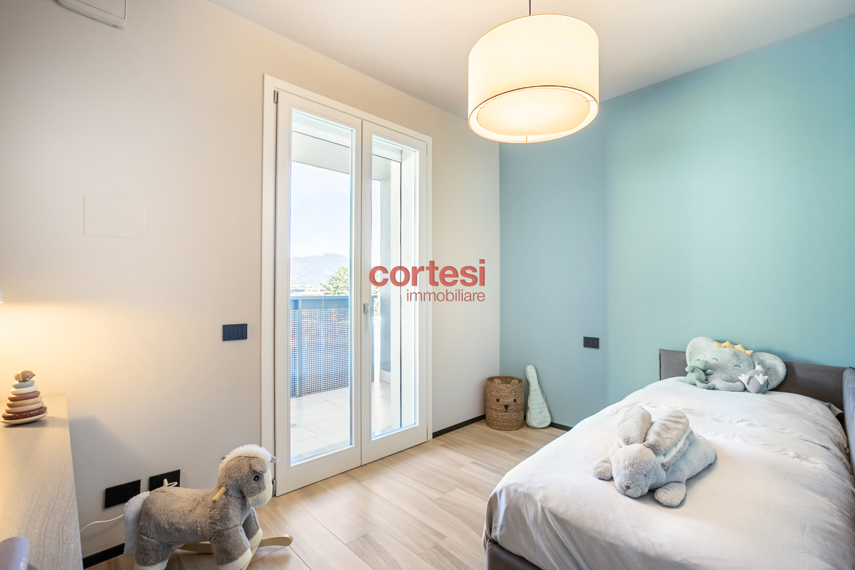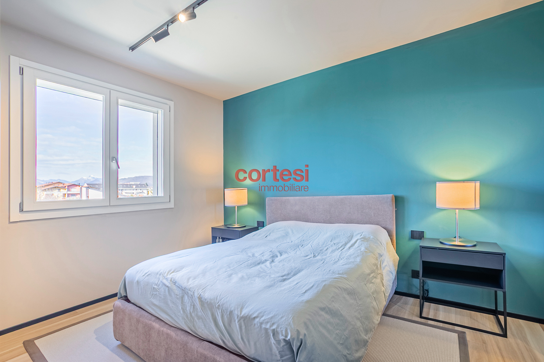 L’ingresso introduce a una zona giorno ampia e luminosa con living e cucina open space, pavimenti in gres porcellanato effetto legno di alta gamma; le due terrazze, dotate di prese elettriche e punti luce esterni, fungono da naturale prolungamento dello spazio conviviale. Il disimpegno notte ospita un’ampia armadiatura a muro che integra il vano tecnico con attacchi per lavatrice e asciugatrice; la camera singola dispone di un balcone di servizio, mentre la camera matrimoniale, con vista sul verde e su Bergamo Alta, è dotata di bagno en suite con ampia doccia walk-in, rivestimenti contemporanei e sanitari sospesi. È presente un secondo bagno di servizio, anch’esso rifinito con cura e dotato di doccia.