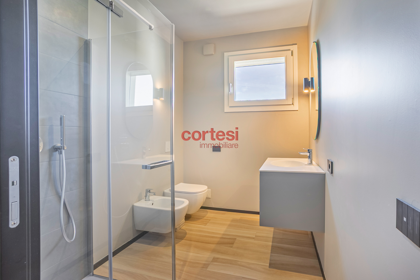 L’immobile, abitato per meno di un anno, è praticamente nuovo e completato con finiture extra capitolato: eleganti porte laccate nere abbinate a placche Biticino e soluzioni di design studiate da un architetto. Dal punto di vista impiantistico offre riscaldamento a pavimento con regolazione per ambiente, climatizzazione gestita da pompa di calore autonoma, impianto fotovoltaico privato da 2,75 kW, sistema domotico integrato per la gestione delle temperature e delle tapparelle motorizzate, oltre alla predisposizione per impianto d’allarme.